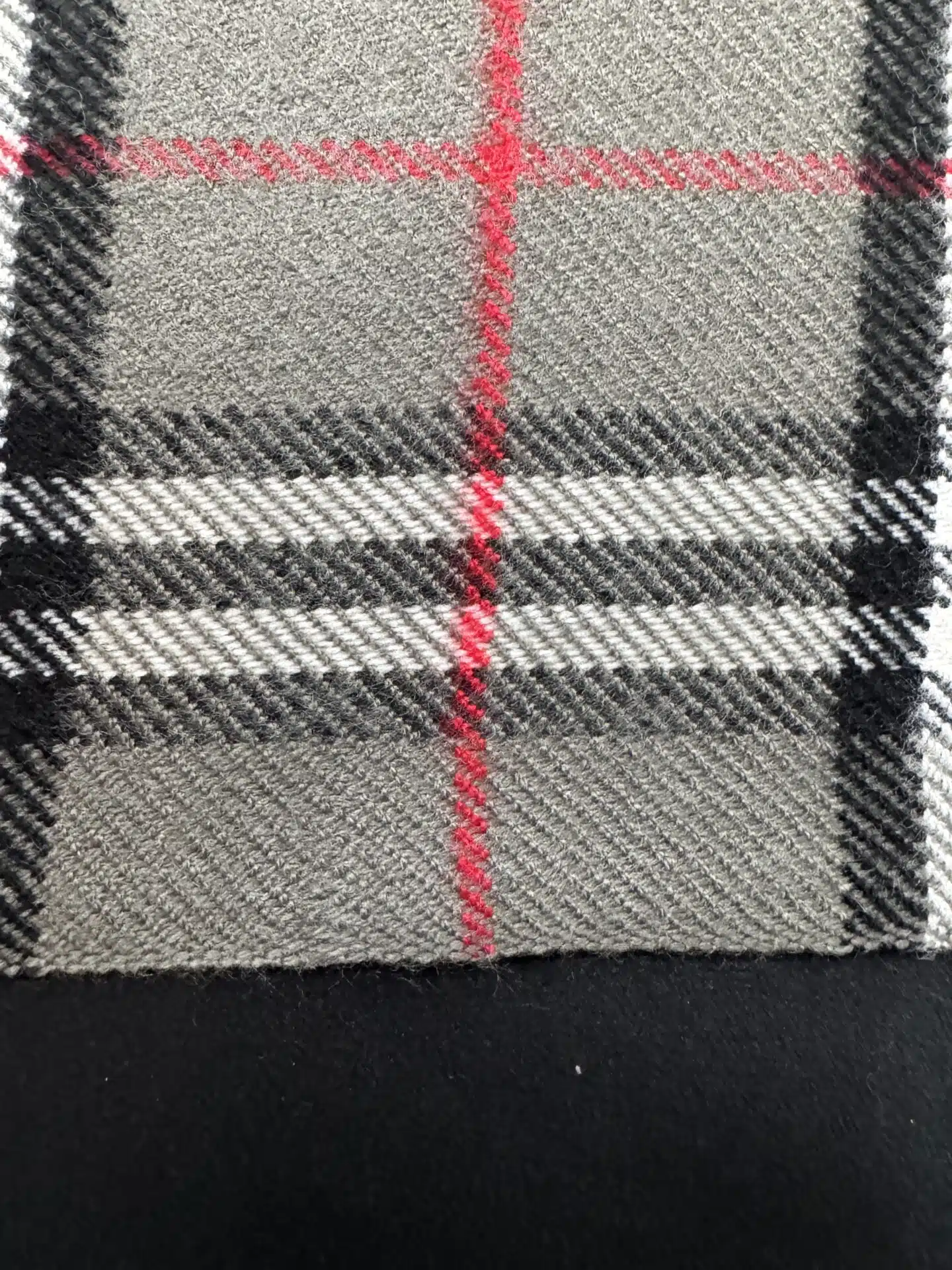Burberry Black, Red & Gray Nova Check Scarf, crafted from 100% lambswool and made in England.